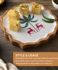 Made from premium quality wood, each platter is uniquely crafted to showcase the natural grain, making every piece one-of-a-kind. Its sturdy build and smooth finish make it ideal for serving appetizers, snacks, cheese, fruits, desserts, or even a beautiful charcuterie spread. The natural wood tone and minimalist design complement all types of table settings – from traditional to modern.