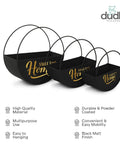 Introducing the Dudki Sweet Home Indoor Outdoor Resin Hanging Planters - A set of 3 exquisite plant containers designed to enhance your gardening experience while adding a touch of elegance to your living spaces. These versatile planters combine aesthetics and functionality seamlessly, making them the perfect addition to any home or garden. Crafted from high-quality resin material, these planters are virtually unbreakable, ensuring they withstand the test of time and the elements. The Matt Black finish exudes sophistication and complements a wide range of interior and exterior decor styles.